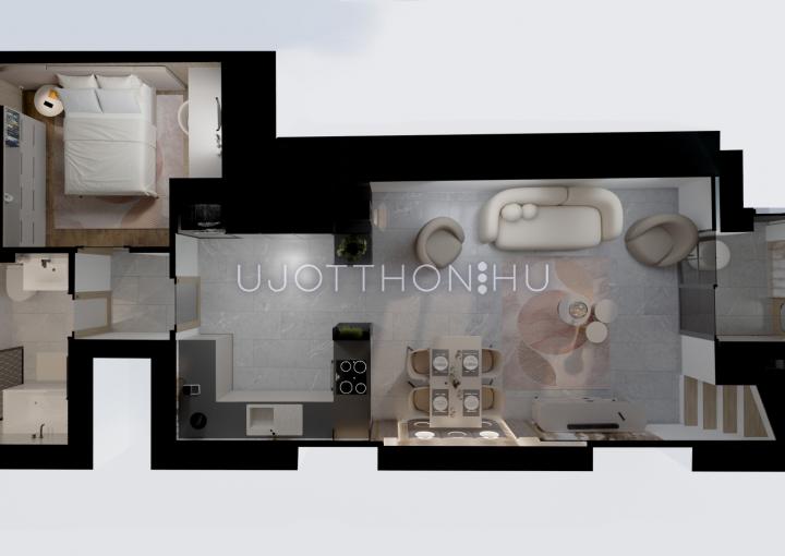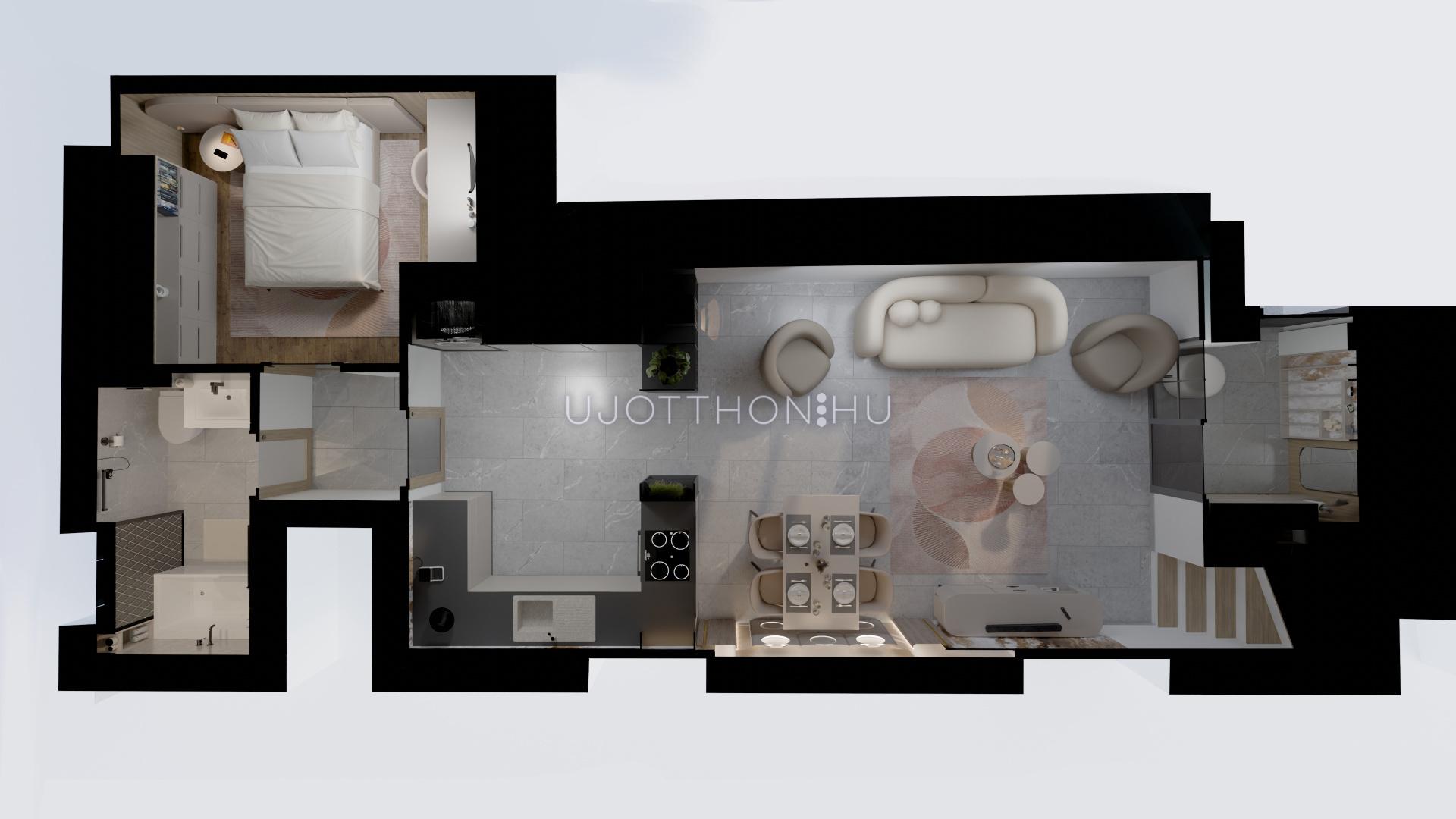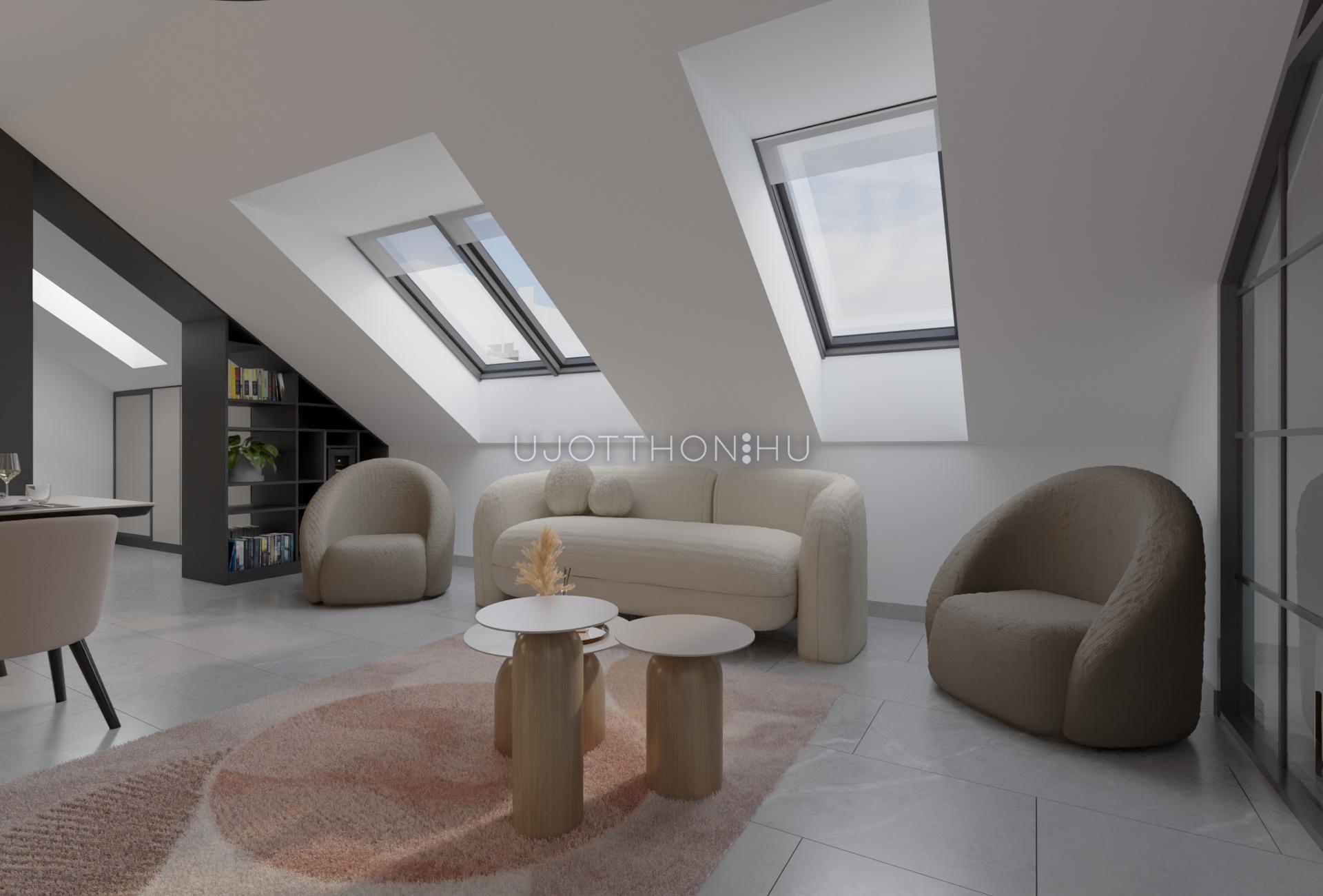 Duplakomfortos infrastruktúrával rendelkező, élhető terekkel hatalmas teraszokkal,