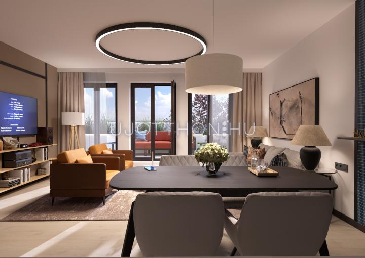 A 60 lakásos társasház változatos otthonokkal - garzontól a 2 hálószobás kialakítással sikeresen ötvözi városi életstílust a kényelemmel és a funkcionalitással.