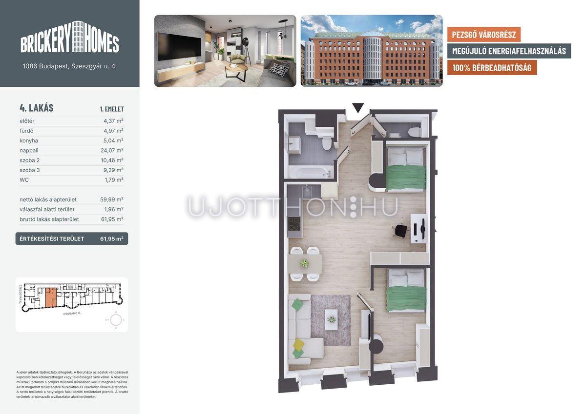 2 szobás 61 m2-es Lakás BrickeryHomes - Budapest VIII. kerület, Józsefváros, Szeszgyár utca 4