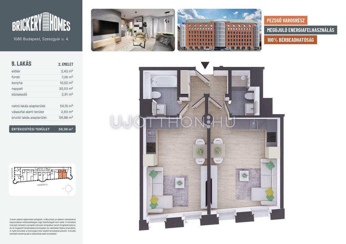 2 szobás 56 m2-es Lakás BrickeryHomes - Budapest VIII. kerület, Józsefváros, Szeszgyár utca 4