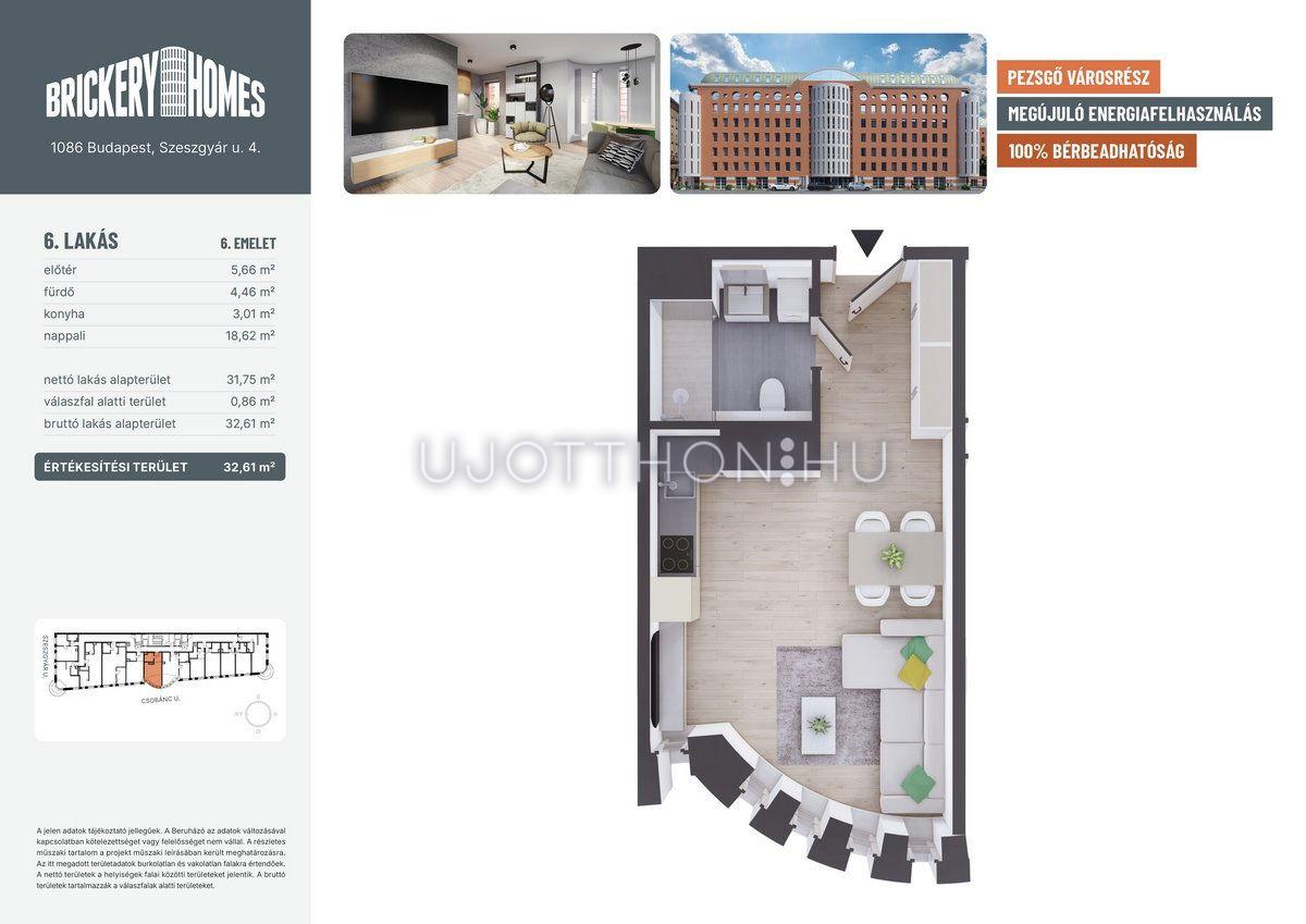 1 szobás 33 m2-es Lakás BrickeryHomes - Budapest VIII. kerület, Józsefváros, Szeszgyár utca 4
