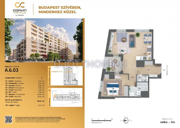 2 szobás 59 m2-es Lakás Corvin Campus by Cordia - Budapest VIII. kerület, Józsefváros, Balassa utca 7