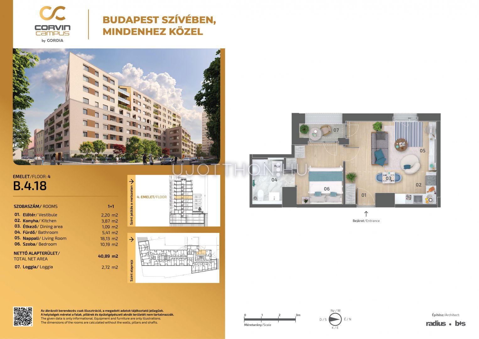 2 szobás 41 m2-es Lakás Corvin Campus by Cordia - Budapest VIII. kerület, Józsefváros, Balassa utca 7