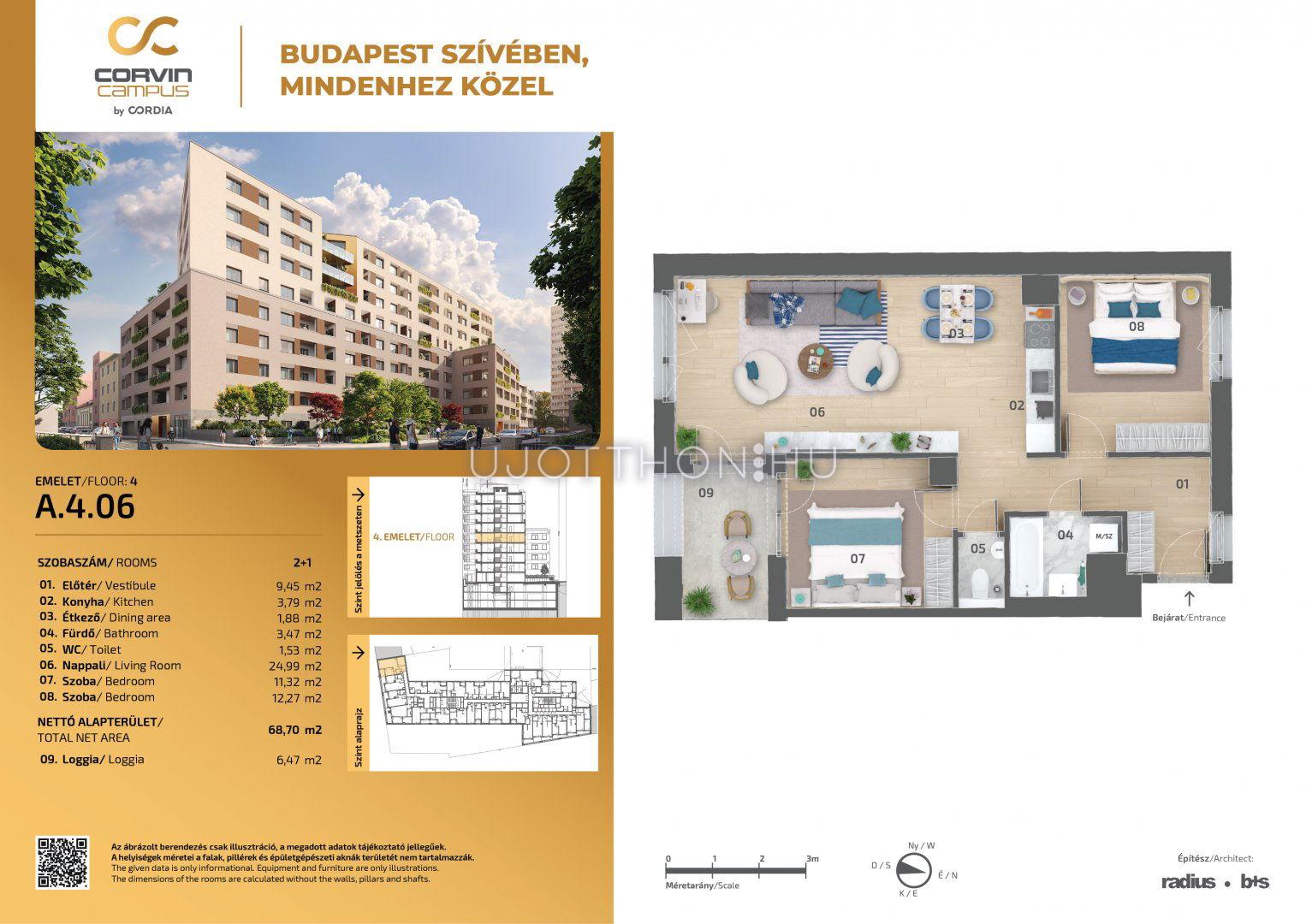 3 szobás 69 m2-es Lakás Corvin Campus by Cordia - Budapest VIII. kerület, Józsefváros, Balassa utca 7