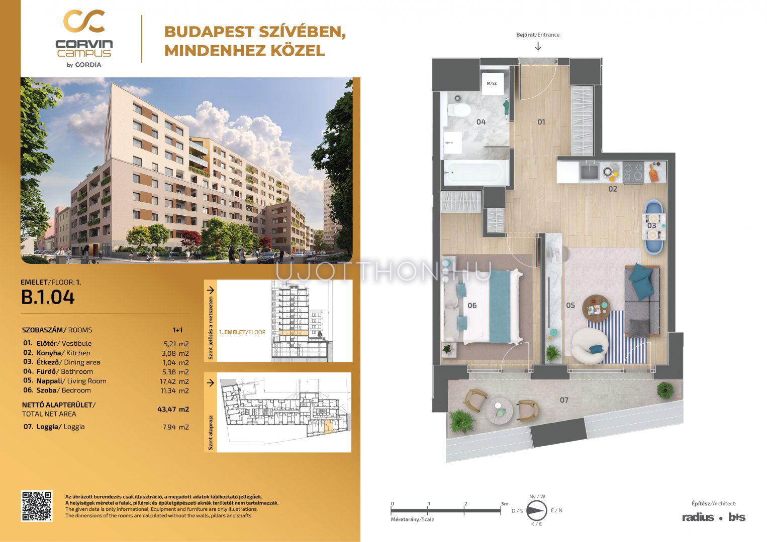 2 szobás 43 m2-es Lakás Corvin Campus by Cordia - Budapest VIII. kerület, Józsefváros, Balassa utca 7