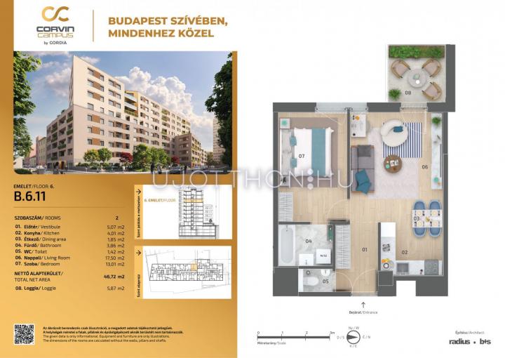 2 szobás 47 m2-es Lakás Corvin Campus by Cordia - Budapest VIII. kerület, Józsefváros, Balassa utca 7