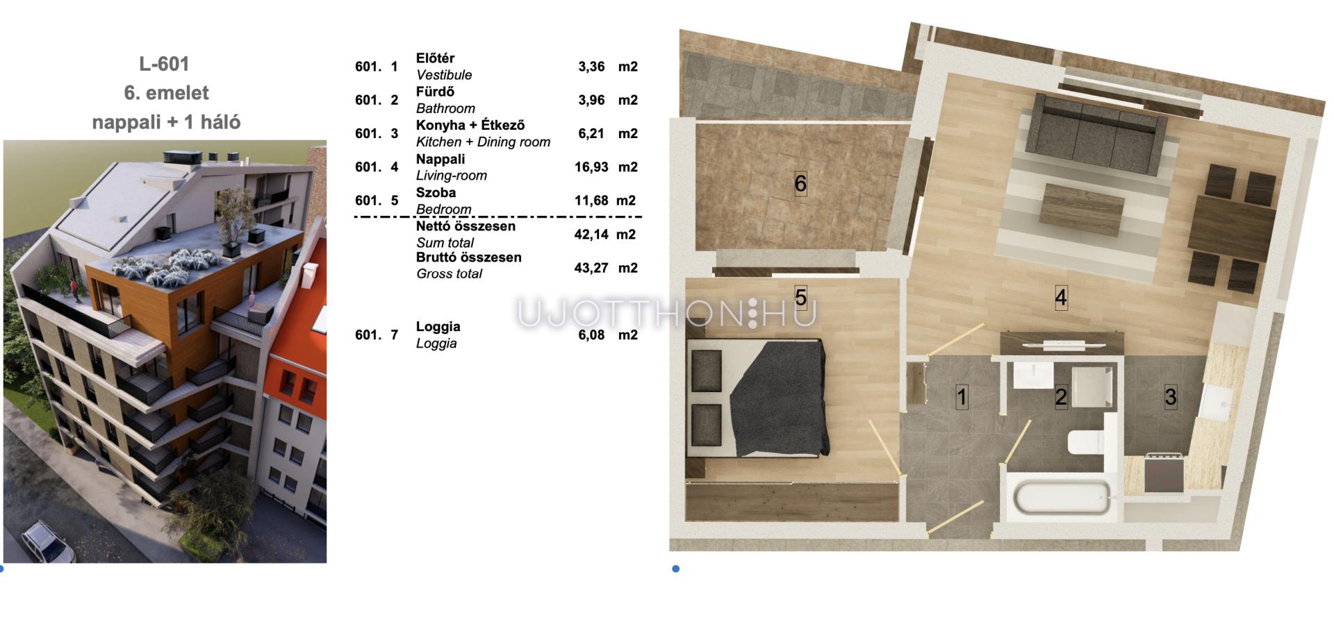 2 szobás 42 m2-es Lakás Okos Otthon - M01 Projekt - Budapest VIII. kerület, Corvin negyed