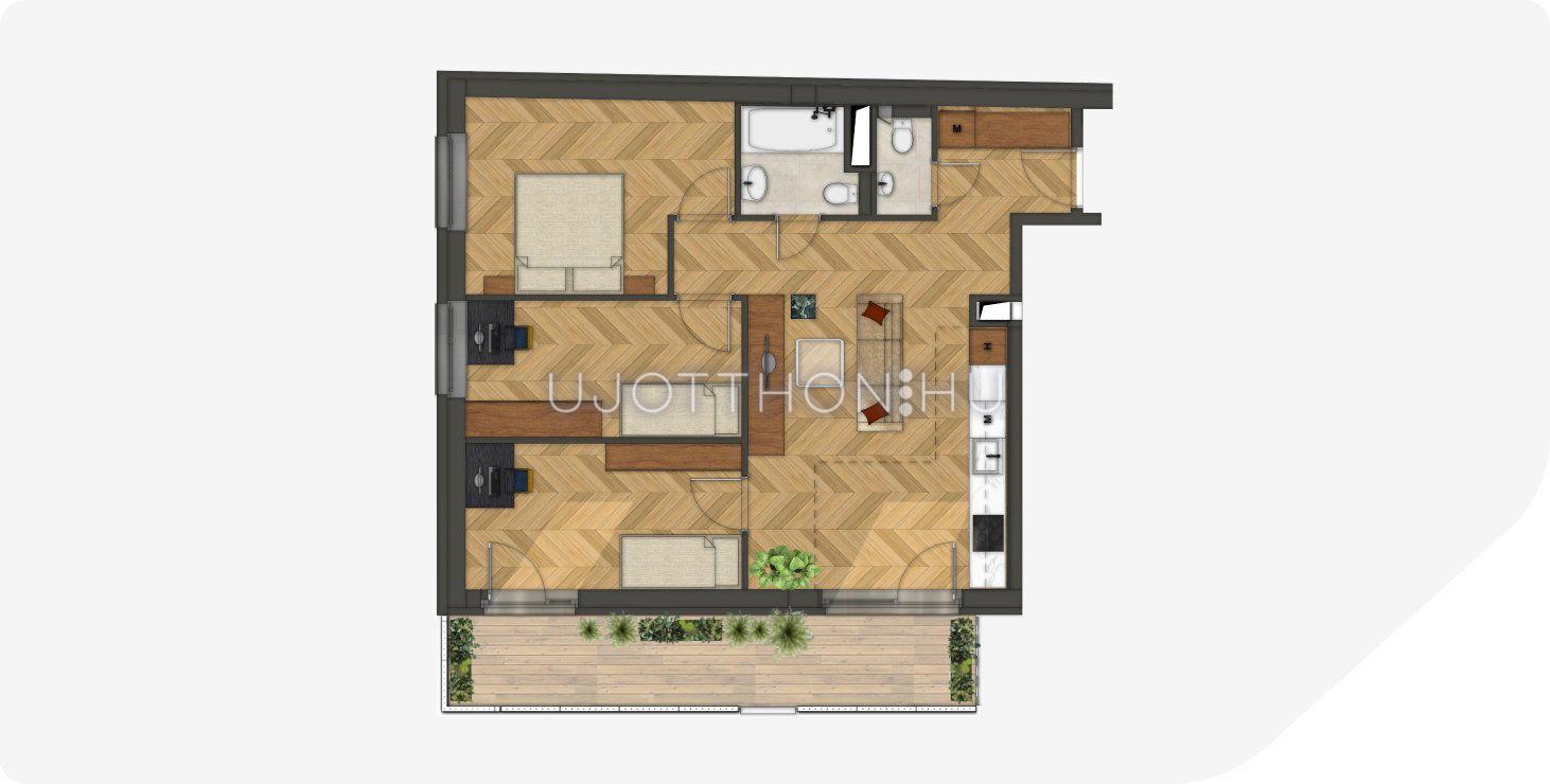 A hangulatos 37 m²-es stúdióktól a tágas, 88 m²-es, 4 szobás penthouse-ig mindenki megtalálhatja a hozzá illő otthont. A kertkapcsolatos és teraszos lakások, a garázs és a tárolók mind a modern városi élet kényelmét szolgálják.