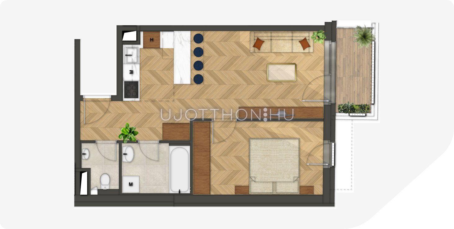 1 + 1 félszobás 46 m2-es Lakás Samuel Garden - Budapest VIII. kerület, Józsefváros, Diószegi Sámuel utca 3