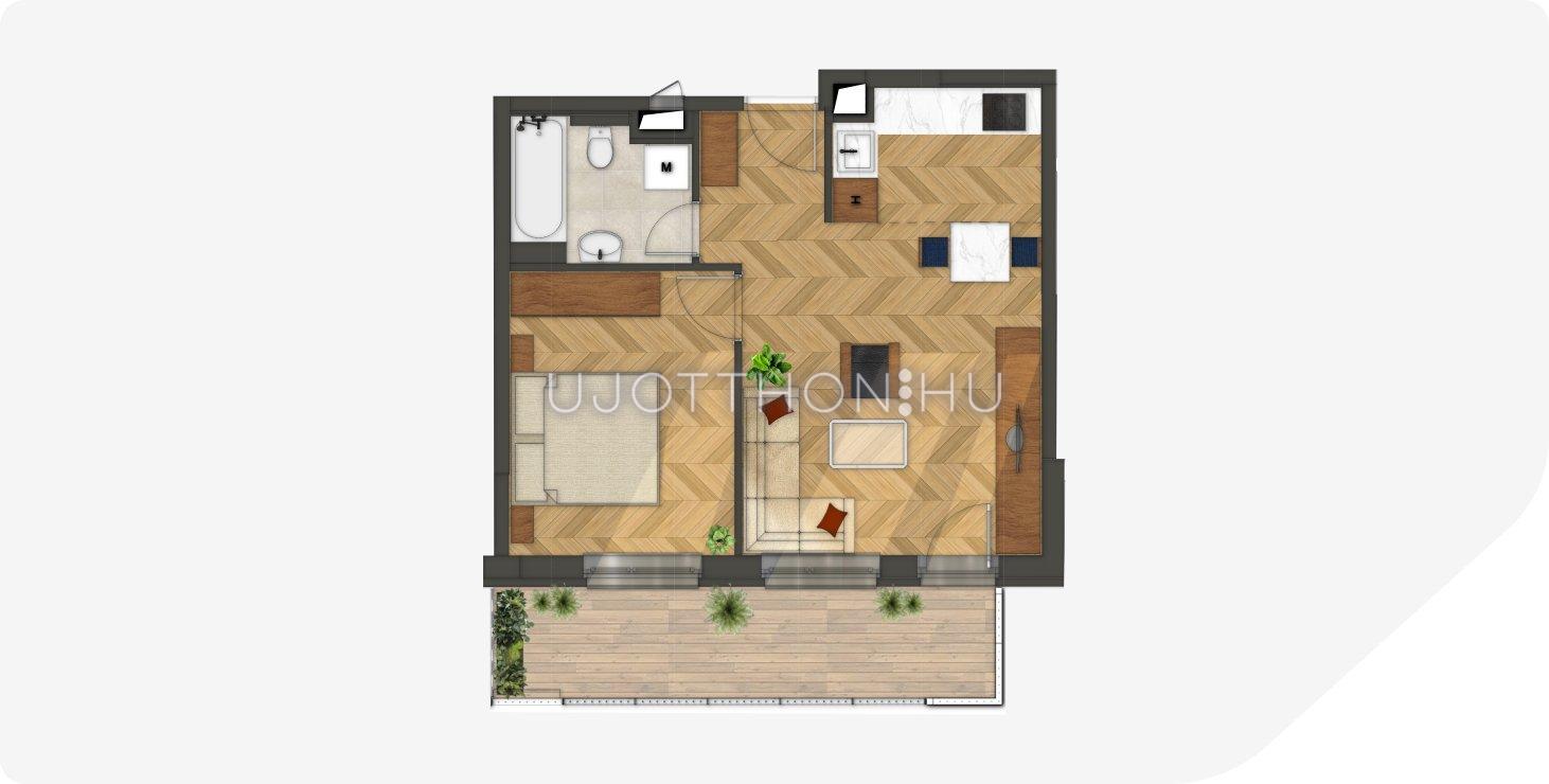 1 + 1 félszobás 43 m2-es Lakás Samuel Garden - Budapest VIII. kerület, Józsefváros, Diószegi Sámuel utca 3