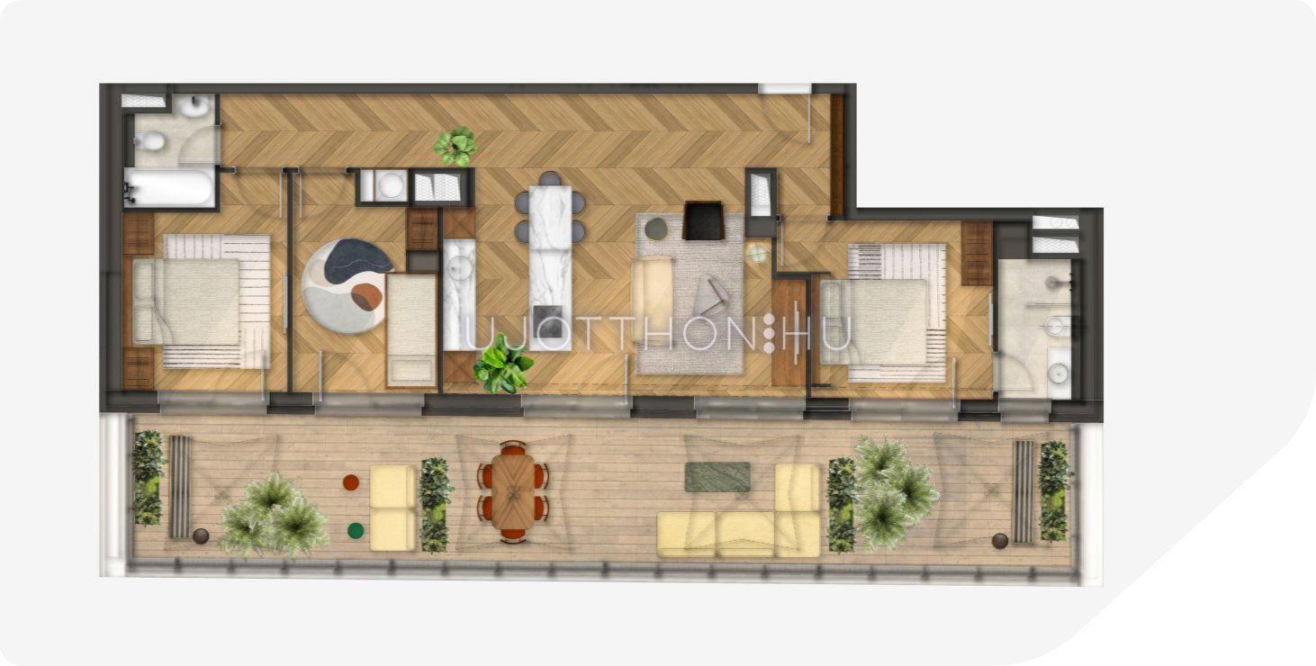 A hangulatos 37 m²-es stúdióktól a tágas, 88 m²-es, 4 szobás penthouse-ig mindenki megtalálhatja a hozzá illő otthont. A kertkapcsolatos és teraszos lakások, a garázs és a tárolók mind a modern városi élet kényelmét szolgálják.