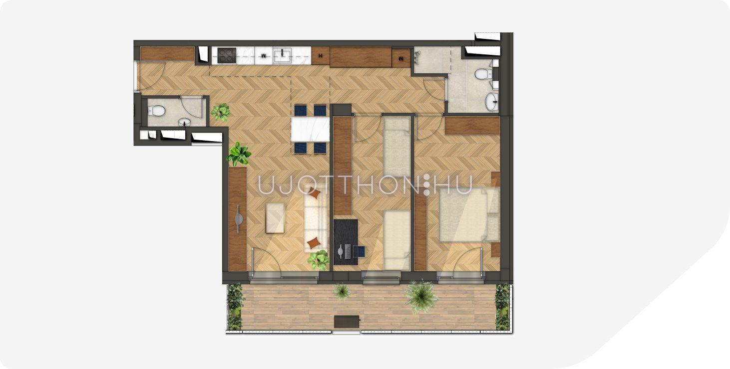 A hangulatos 37 m²-es stúdióktól a tágas, 88 m²-es, 4 szobás penthouse-ig mindenki megtalálhatja a hozzá illő otthont. A kertkapcsolatos és teraszos lakások, a garázs és a tárolók mind a modern városi élet kényelmét szolgálják.