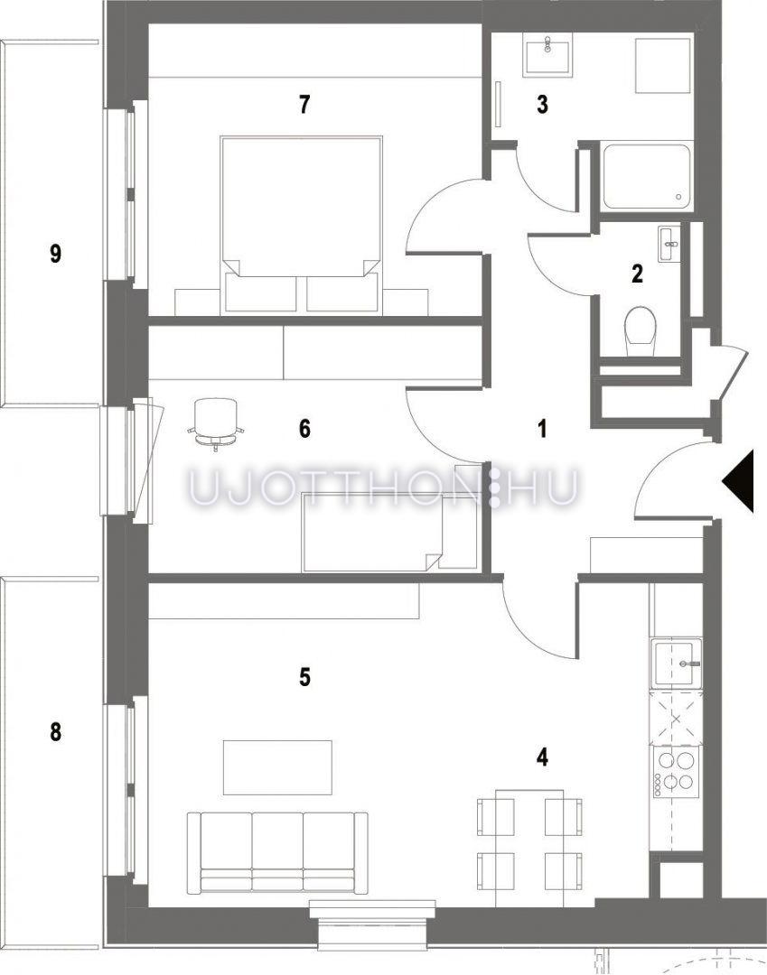 3 szobás 56 m2-es Lakás M76 Projekt - Budapest IX. kerület, Ferencváros, Mester utca 76/B