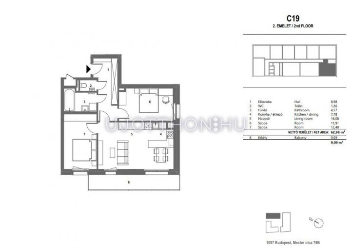 3 szobás 63 m2-es Lakás M76 Projekt - Budapest IX. kerület, Ferencváros, Mester utca 76/B