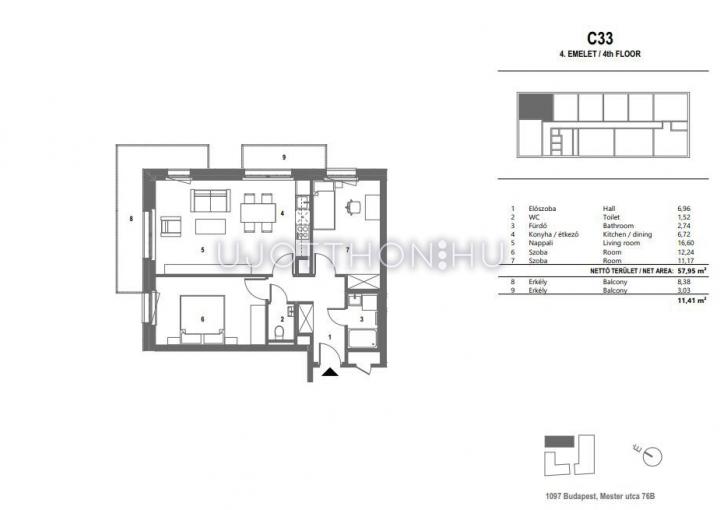 3 szobás 58 m2-es Lakás M76 Projekt - Budapest IX. kerület, Ferencváros, Mester utca 76/B