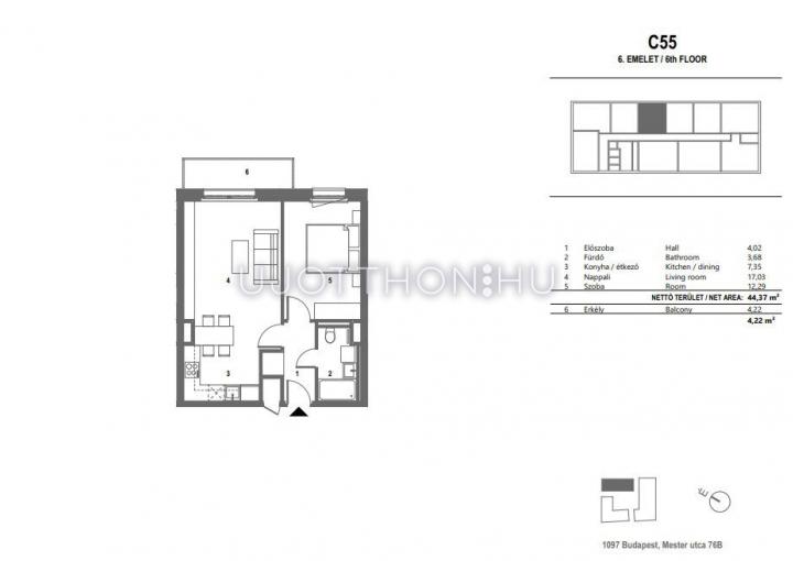 3 szobás 44 m2-es Lakás M76 Projekt - Budapest IX. kerület, Ferencváros, Mester utca 76/B