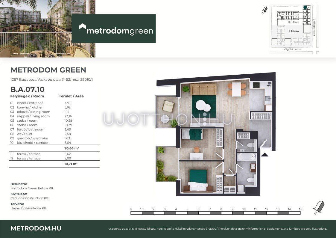 3 szobás 71 m2-es Lakás Metrodom Green 2. ütem - Budapest IX. kerület, 1097 Budapest IX. kerület, Vaskapu utca 51-53.