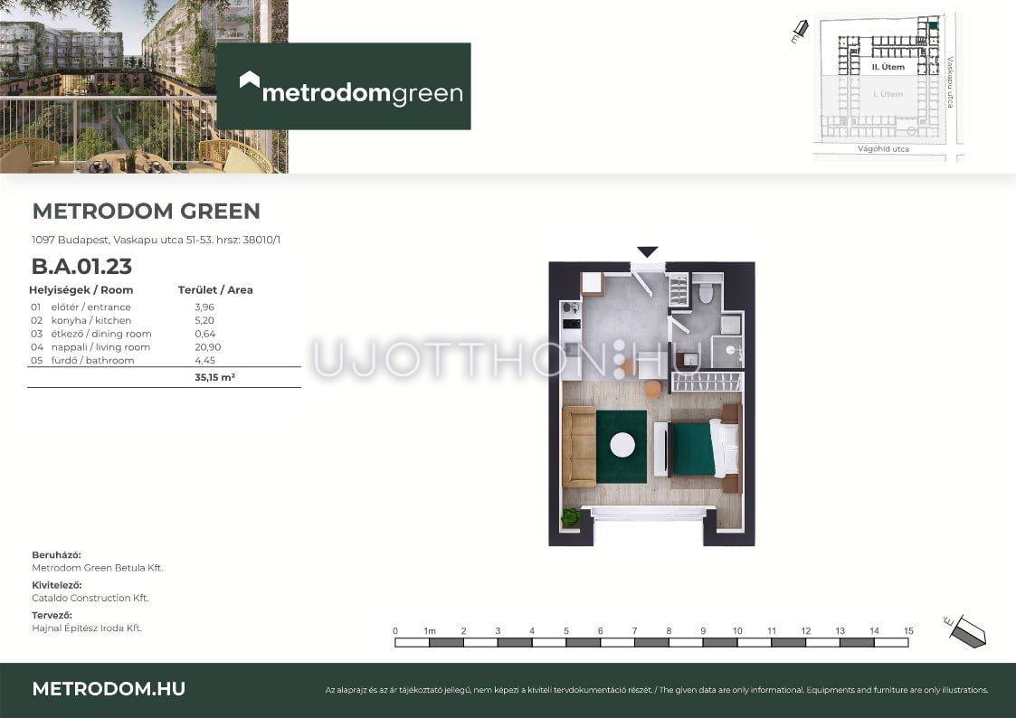 1 szobás 35 m2-es Lakás Metrodom Green 2. ütem - Budapest IX. kerület, 1097 Budapest IX. kerület, Vaskapu utca 51-53.