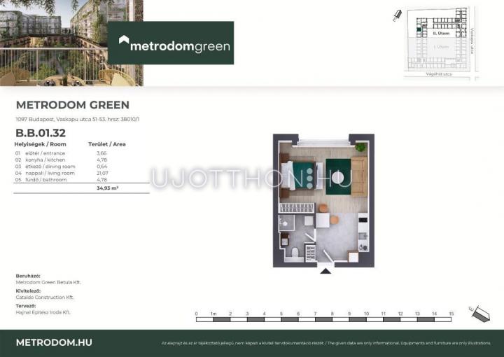 1 szobás 35 m2-es Lakás Metrodom Green 2. ütem - Budapest IX. kerület, 1097 Budapest IX. kerület, Vaskapu utca 51-53.