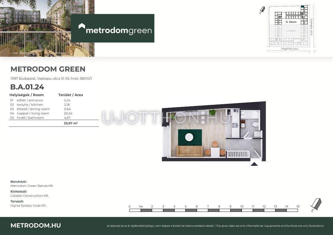 1 szobás 34 m2-es Lakás Metrodom Green 2. ütem - Budapest IX. kerület, 1097 Budapest IX. kerület, Vaskapu utca 51-53.