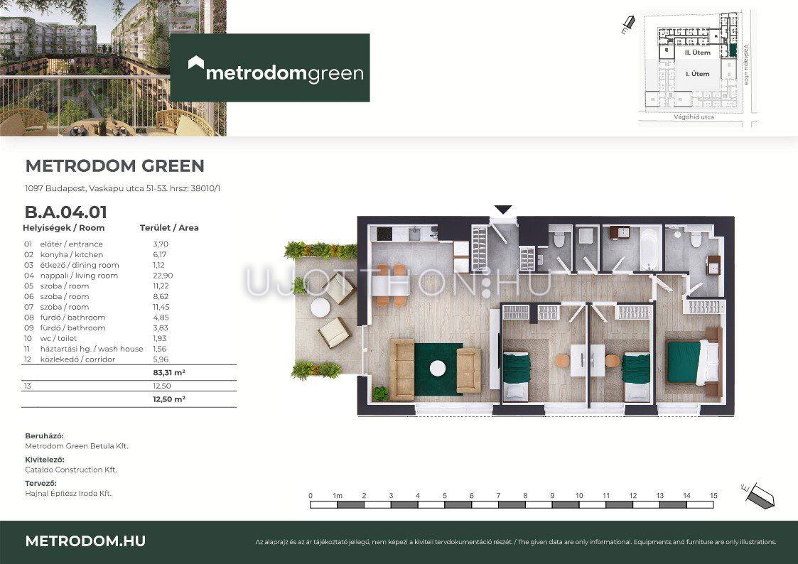 4 szobás 83 m2-es Lakás Metrodom Green 2. ütem - Budapest IX. kerület, 1097 Budapest IX. kerület, Vaskapu utca 51-53.
