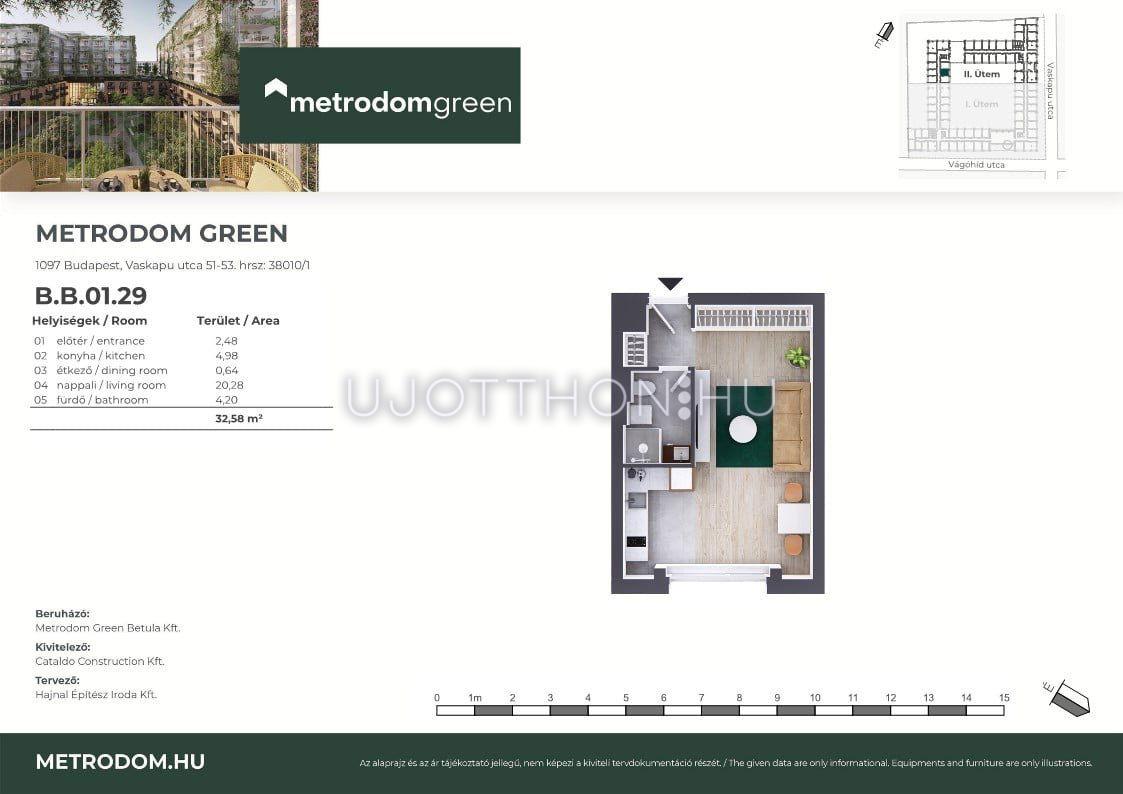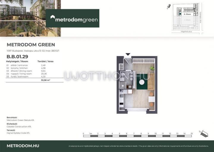 1 szobás 32 m2-es Lakás Metrodom Green 2. ütem - Budapest IX. kerület, 1097 Budapest IX. kerület, Vaskapu utca 51-53.