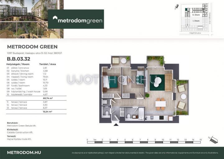 3 szobás 60 m2-es Lakás Metrodom Green 2. ütem - Budapest IX. kerület, 1097 Budapest IX. kerület, Vaskapu utca 51-53.