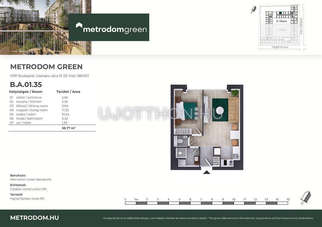 2 szobás 38 m2-es Lakás Metrodom Green 2. ütem - Budapest IX. kerület, 1097 Budapest IX. kerület, Vaskapu utca 51-53.