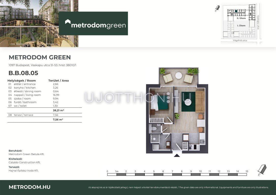 2 szobás 38 m2-es Lakás Metrodom Green 2. ütem - Budapest IX. kerület, 1097 Budapest IX. kerület, Vaskapu utca 51-53.