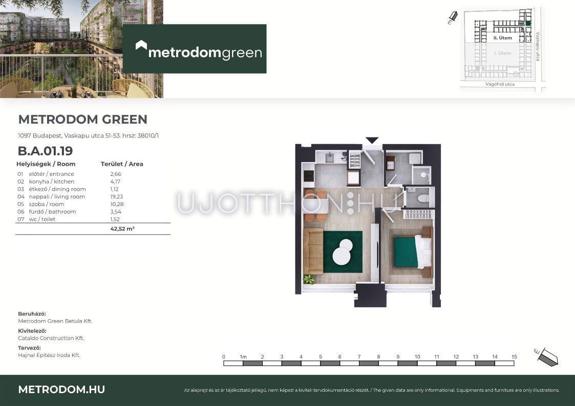 3 szobás 42 m2-es Lakás Metrodom Green 2. ütem - Budapest IX. kerület, 1097 Budapest IX. kerület, Vaskapu utca 51-53.