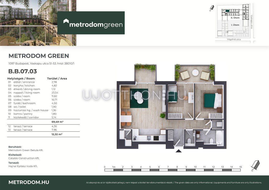 3 szobás 69 m2-es Lakás Metrodom Green 2. ütem - Budapest IX. kerület, 1097 Budapest IX. kerület, Vaskapu utca 51-53.