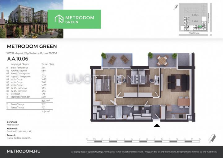 4 szobás 83 m2-es Lakás Metrodom Green - Budapest IX. kerület, Vágóhíd utca 14.