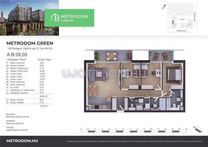 4 szobás 87 m2-es Lakás Metrodom Green - Budapest IX. kerület, Vágóhíd utca 14.