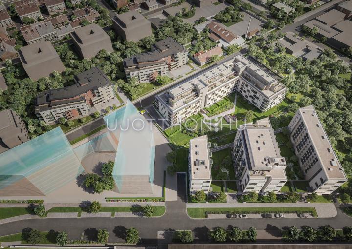 A három épületszárnyból és lépcsőházból álló társasház 137 új otthona pince, földszint és 8 emeletes kialakításban kerül megépítésre. Az igényes, lépcsőházanként egy-egy lifttel ellátott épületszárnyak földszintjén 7 kertkapcsolatos lakás, az I-VIII. emeleteken 130 változatos méretű - 31-77 m2-es lakás épül.