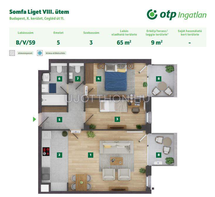 3 szobás 65 m2-es Lakás Somfa Liget VIII. ütem - Budapest X. kerület, Gyárdűlő, Ceglédi út 11