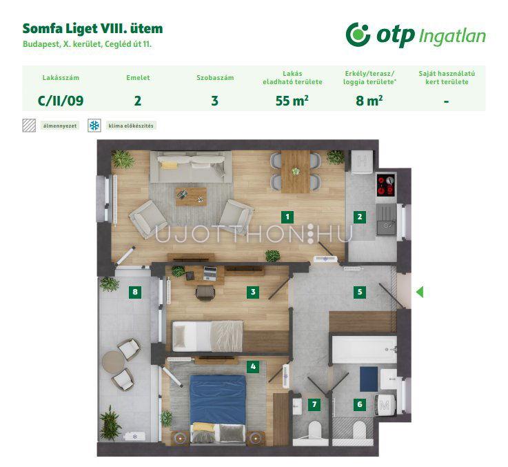 3 szobás 55 m2-es Lakás Somfa Liget VIII. ütem - Budapest X. kerület, Gyárdűlő, Ceglédi út 11