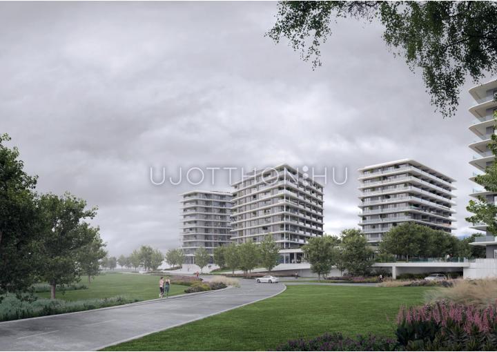 A lakóépületek modern, letisztult megjelenése a Duna vonalvezetését idézi.