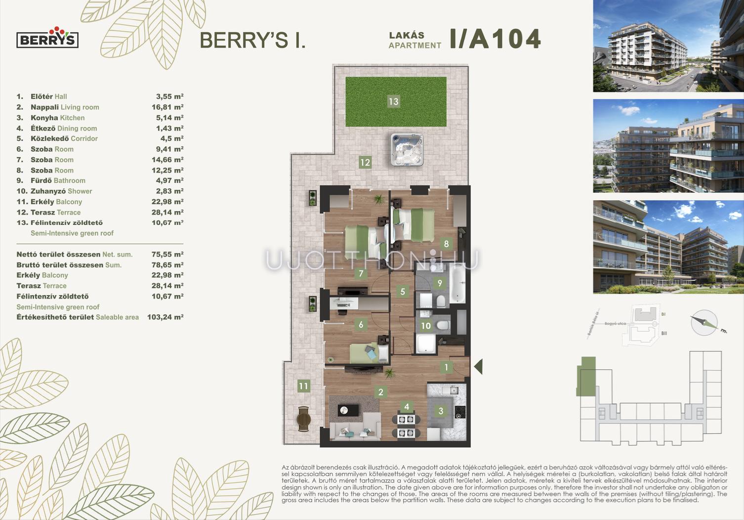 A gyönyörű kilátás nyugalma a városi nyüzsgés harmóniájával. A Berry’s minden lakásához tartozik loggia, erkély, vagy terasz!