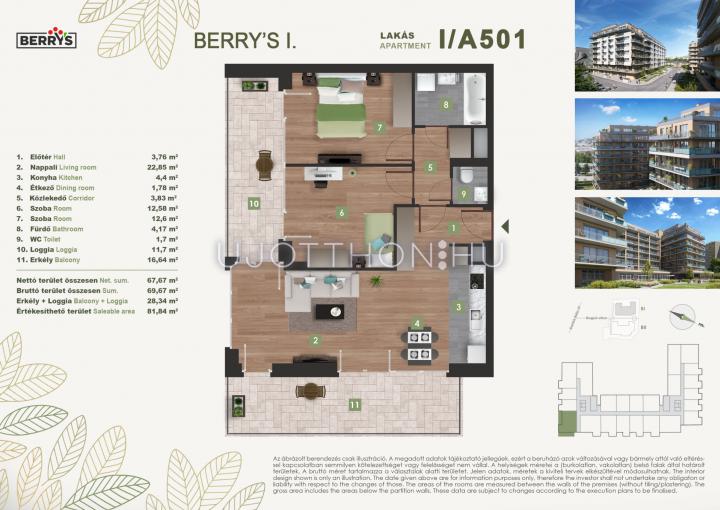 A gyönyörű kilátás nyugalma a városi nyüzsgés harmóniájával. A Berry’s minden lakásához tartozik loggia, erkély, vagy terasz!