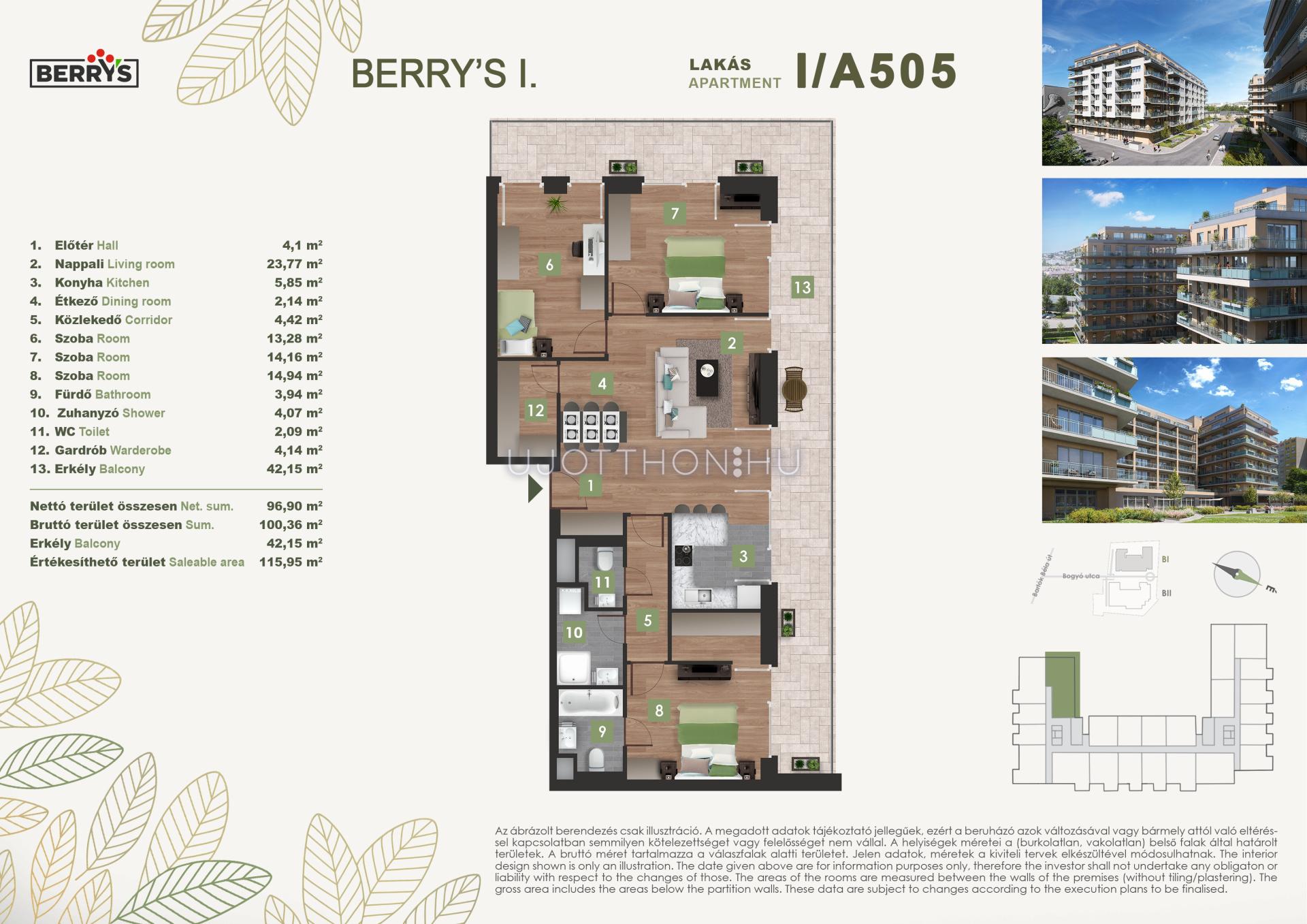 A gyönyörű kilátás nyugalma a városi nyüzsgés harmóniájával. A Berry’s minden lakásához tartozik loggia, erkély, vagy terasz!