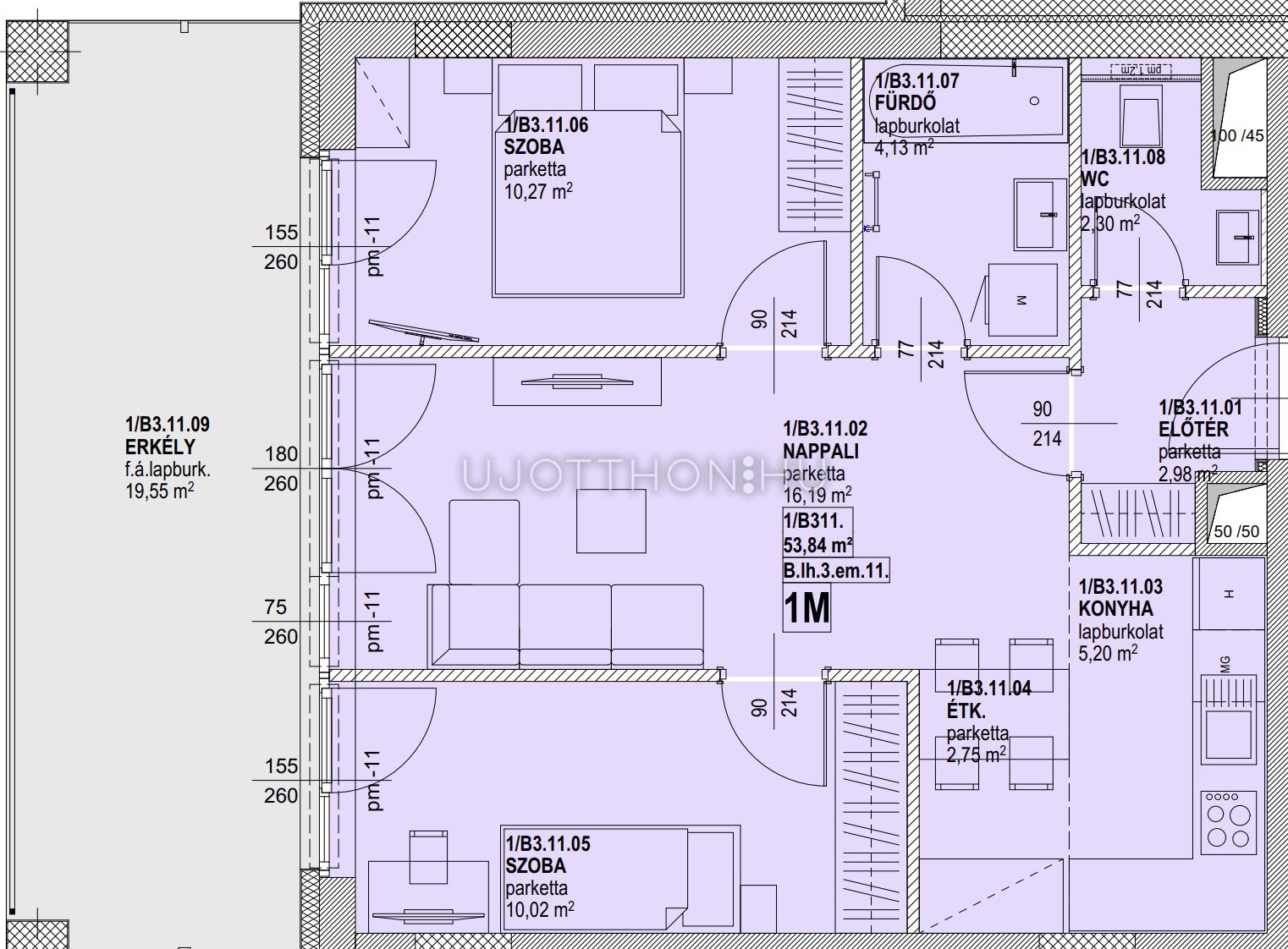 Erkély méret: 19.55 m2