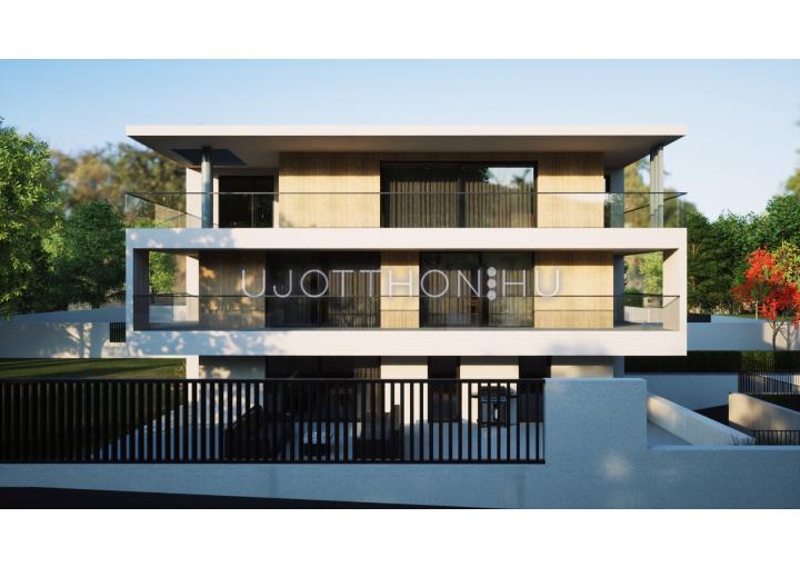 FSZT.: 142 m2 (50 m2 terasz 1/2 méretének a beszámítása mellett. A terasz nélküli nettó alapterület 117 m2), DNY-i, 5 szobás, 2 fürdőszobás, 2 db teremgarázs hely (+10 Mft/db), 5,5 m2 tárolóval (+5,5 Mft) és 192 m2 saját kert.