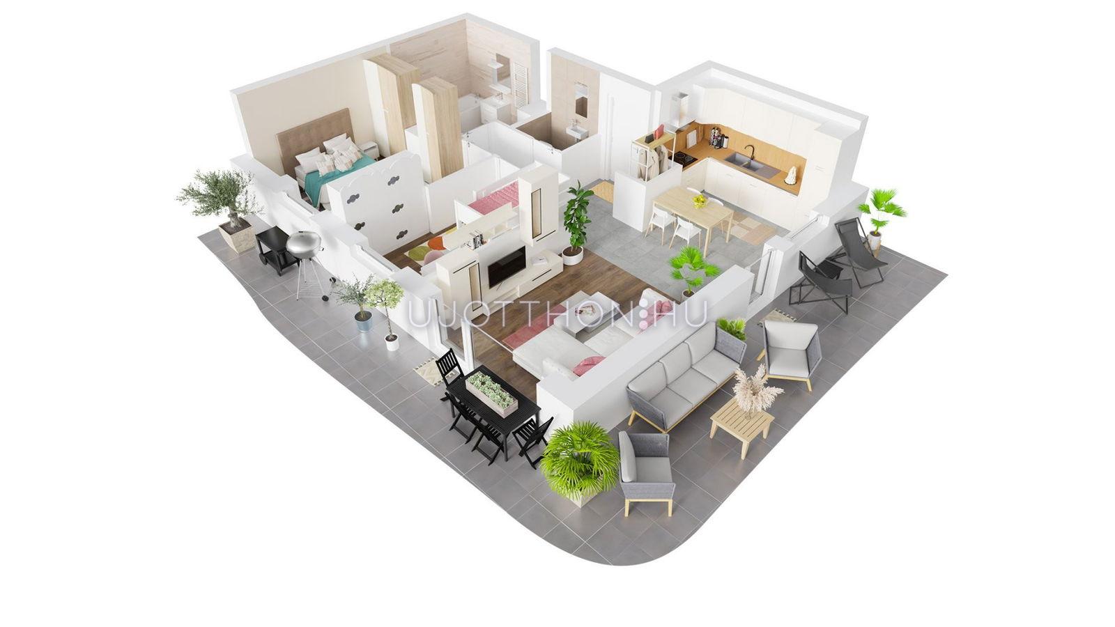 Olyan otthonról álmodsz, mely végre nem a kompromisszumokról szól? Ahol minden a Te igényeid és stílusod szerint kerül kialakításra? Ahonnan jó érzés reggelente útnak indulni és ahová boldogító hazatérni? Amelyben hosszú távon is fantáziát látsz? A nappali plusz két hálószobás megoldás számtalan lehetőséget rejt, attól függően, hogyan alakul az életed. Ami az egyik pillanatban dolgozószoba, az a másikban nyugodtan lehet gardrób-, vendég-, játszó- vagy gyerekszoba. Válaszd ki a számodra legszimpatikusabb elrendezést, tájolást, emeletet, és kezdj el képzeletben berendezkedni. Az erkélyt vagy - földszinti lakás esetén - a kertkapcsolatot se hagyd figyelmen kívül!