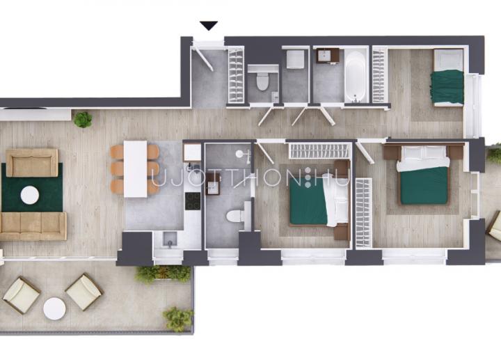 - Tényleg jól használható elosztás: praktikus, jól élhető, modern kialakítás a beruházótól megszokott magas színvonalon.