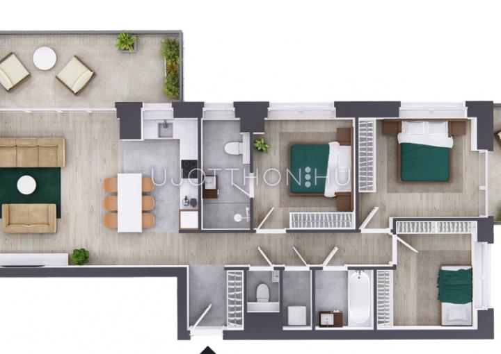 - Tényleg jól használható elosztás: praktikus, jól élhető, modern kialakítás a beruházótól megszokott magas színvonalon.