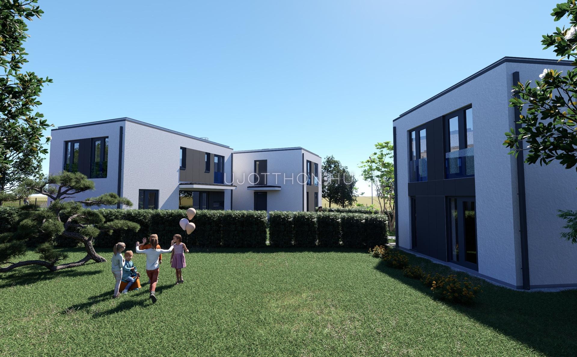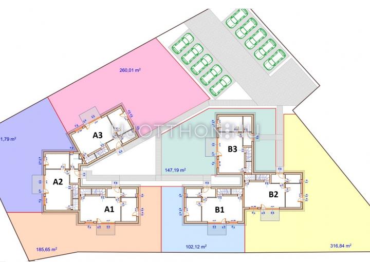 XI. Kerület SPANYOLRÉT KÖRZETÉBEN, CSENDES MELLÉKUTCÁBAN, teljesen SÍK, nagyjából téglalap alakú, 2000 m2 telken épülő, 2x3 épületből álló, SORHÁZI TÁRSASHÁZBAN kínálunk eladásra, 6 db SAJÁT KERTRE NÉZŐ, belső 2 szintes, 120 m2-es (7 m2 terasz 1/2 méretének a beszámítása mellett. A terasz nélküli nettó főfalakon belüli alapterület 117 m2), 5 SZOBÁS, 2 FÜRDŐSZOBÁS, 2 DB TELKEN BELÜLI FELSZÍNI BEÁLLÓVAL (+4 Mft/db), és 102 - 260 m2 SAJÁT KERTTEL rendelkező sorházi lakásokat.