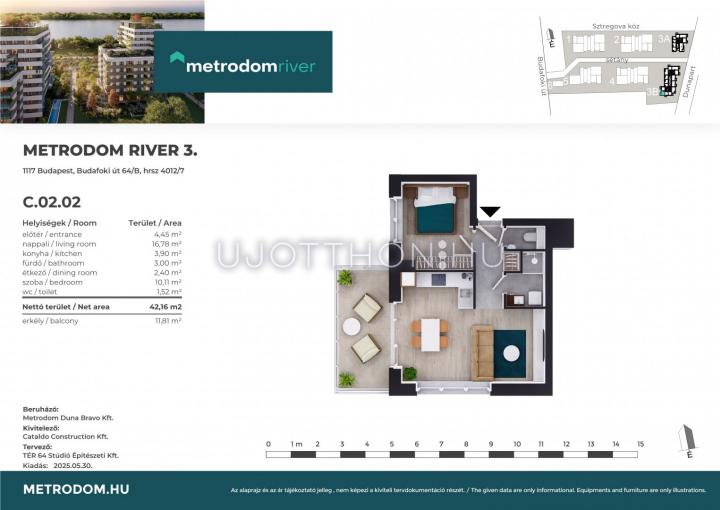 2 szobás 42 m2-es Lakás Metrodom River 3. - Budapest XI. kerület, Kelenföld, Budafoki út 64/B