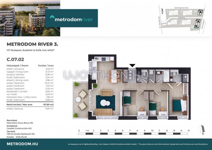 4 szobás 88 m2-es Lakás Metrodom River 3. - Budapest XI. kerület, Kelenföld, Budafoki út 64/B