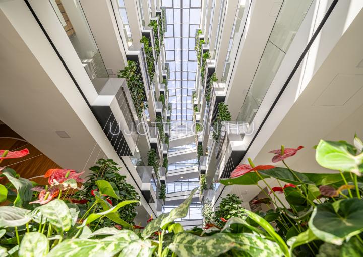 A Metrodom River lakópark nemcsak a funkciói miatt rendkívül vonzó, de egyedi megjelenése is sokat hozzátesz az otthon-élményhez. Az épületek 5, 9 és 13 emelet magasak, az alacsonyabb szárnyakat intenzív zöldtető teszi különlegessé. A lakóházakba belépve egy ötemelet magas, tágas és világos, átriumos előtérbe jutunk, melyet növények tesznek otthonossá egészen a 18 méteres belmagasságig. A víz motívuma itt csobogó formájában jelenik meg.