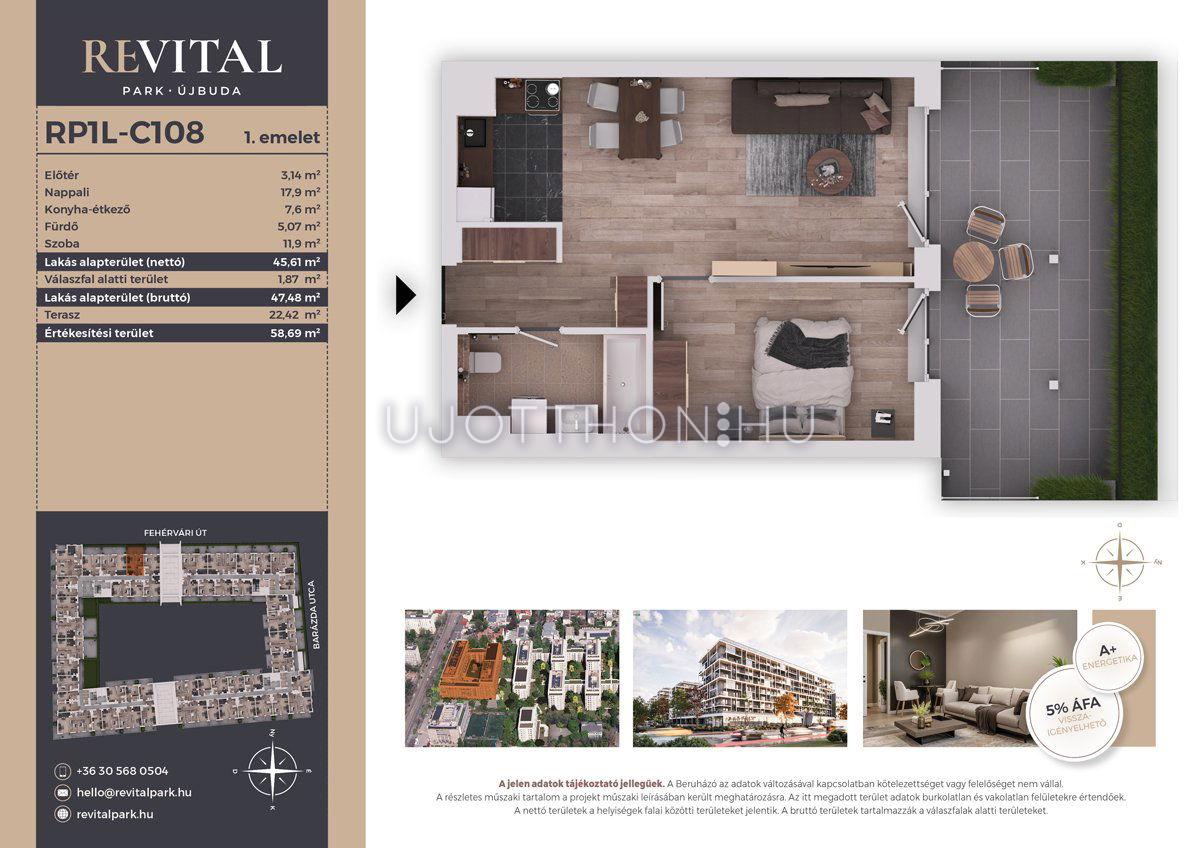 2 szobás 46 m2-es Lakás Revital Park - Budapest XI. kerület, Kelenföld, Fehérvári út 120